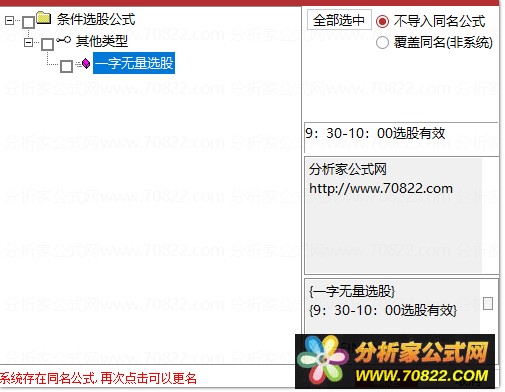 * 关于股票公式时间限制,如果在引入大智慧公式,交易师公式或者飞狐公式的时候,发现公式名称栏是空白的,这时候调整电脑时间到1997年,又能出现公式名称,并且能正常显示,可能是公式使用期限已过。