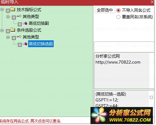 * 关于股票公式时间限制,如果在引入大智慧公式,交易师公式或者飞狐公式的时候,发现公式名称栏是空白的,这时候调整电脑时间到1997年,又能出现公式名称,并且能正常显示,可能是公式使用期限已过。