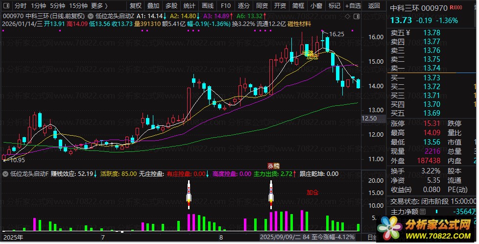 2. 副图判断主力控盘状态与市场热度;
