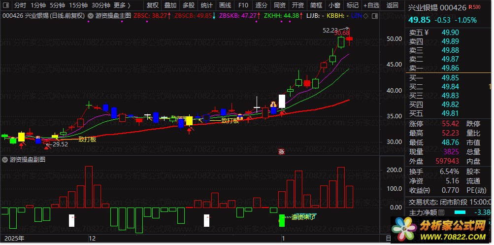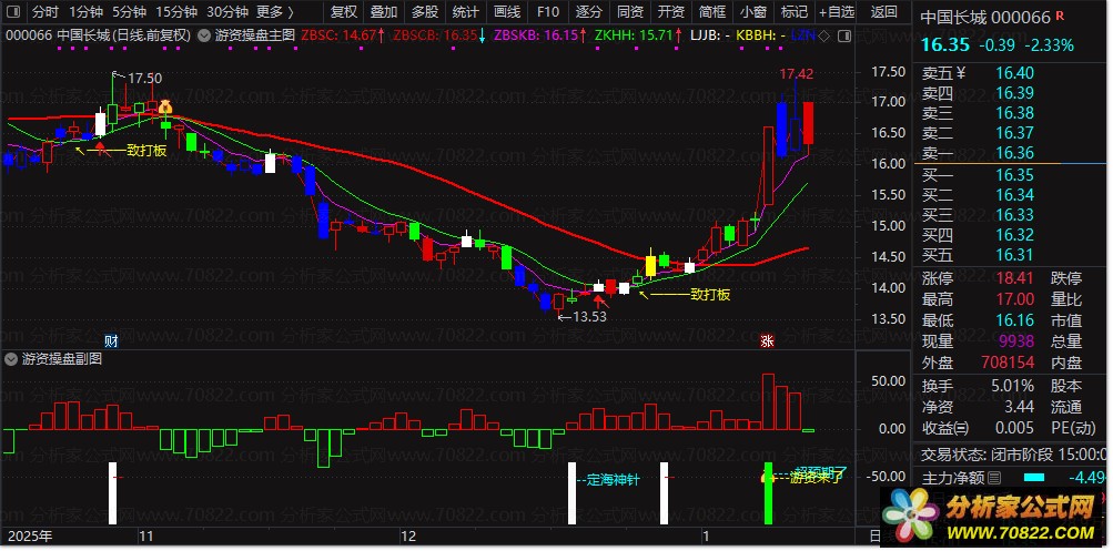 〖游资操盘套装〗——多方共振合力操作 精准捕捉主力异动 一招锁定涨停潜力股! “游资操盘套装指标”由主图、副图与选股三部分组成,专为短线高手设计。主图融合多周期均线、打板信号、涨跌停标识及买卖加码提示,直观呈现股价强弱与资金意图;副图通过能量线、筹码分布、超预期拉升信号等维度,揭示游资进场痕迹,并标注“定海神针”“游资来了”等关键节点;选股公式则聚焦强势突破特征——当日涨幅超5%、收盘近最高价,精准筛选具备游资介入迹象的标的。