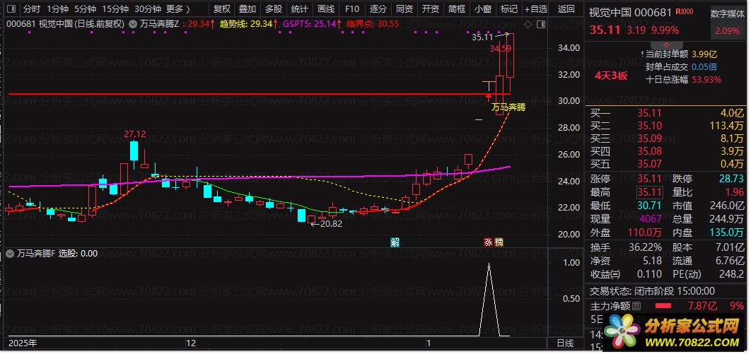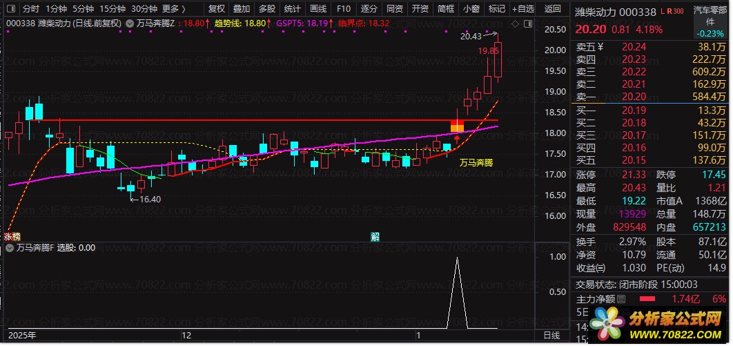 〖万马奔腾〗套装指标 一图锁定临界点 阳线突破瞬间精准捕捉 本指标包含主图副图选股三合一功能(源码开放)