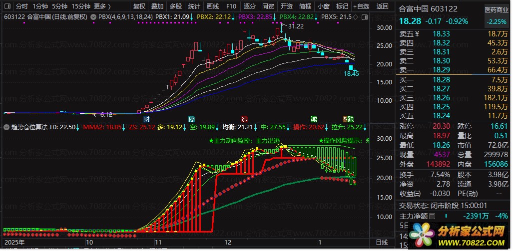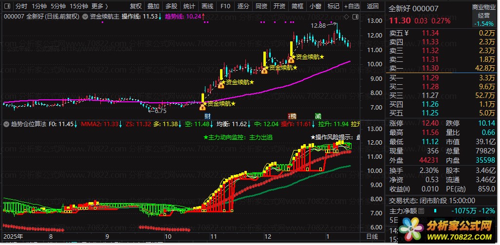 构建以TFXXS风险系数为核心的五级风控体系,实现从低风险买入区到高风险卖出区的梯度划分。结合主力增仓减仓的筹码流向判定,并搭配量能阶梯式增长过滤模块,形成趋势判断、风险度量与资金验证的闭环决策逻辑,大幅提升中长线持仓的安全性与稳定性。