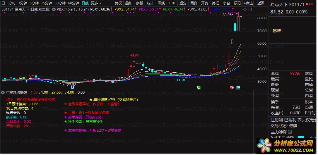 〖严重异动提醒〗副图指标,监管预警综合指标精准版- 贴合交易所真实监管原则 针对通达信的严重异动监管预警指标(副图)来了