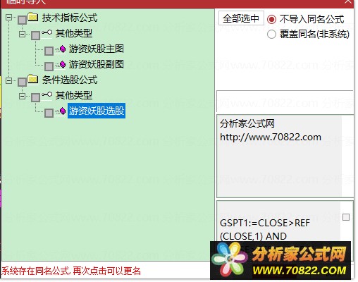 * 关于股票公式时间限制,如果在引入大智慧公式,交易师公式或者飞狐公式的时候,发现公式名称栏是空白的,这时候调整电脑时间到1997年,又能出现公式名称,并且能正常显示,可能是公式使用期限已过。