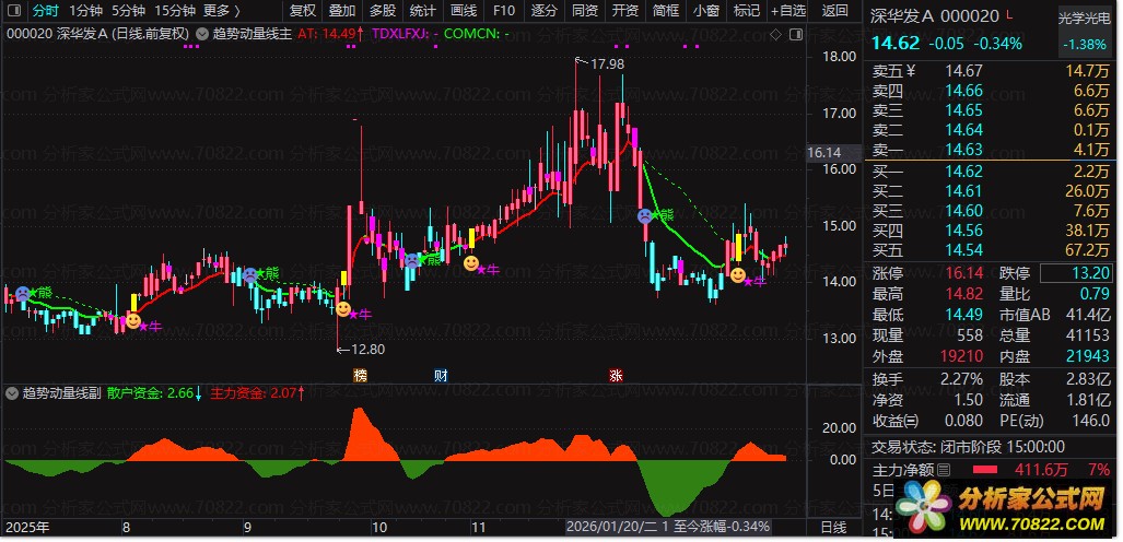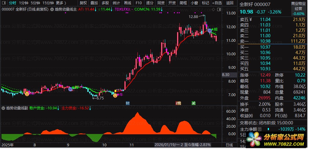 本指标适用于中短线趋势判断与动量分析,结合多周期均线系统、成交量变化及动向指标交叉信号,有效辅助捕捉板块轮动节奏与市场整体情绪波动,是手机端与电脑端通用的趋势动量选股工具。