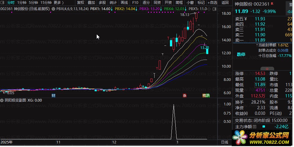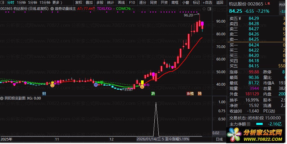 阴阳极变指标战法核心在于捕捉情绪极点反转机会,高风险伴随高收益。其逻辑是跌停次日出现反包动作,无论是否封板成功,只要触及涨停并收出阳线,即视为模型成立。