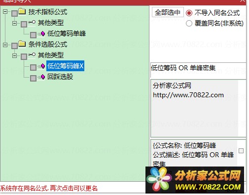 * 关于股票公式时间限制,如果在引入大智慧公式,交易师公式或者飞狐公式的时候,发现公式名称栏是空白的,这时候调整电脑时间到1997年,又能出现公式名称,并且能正常显示,可能是公式使用期限已过。