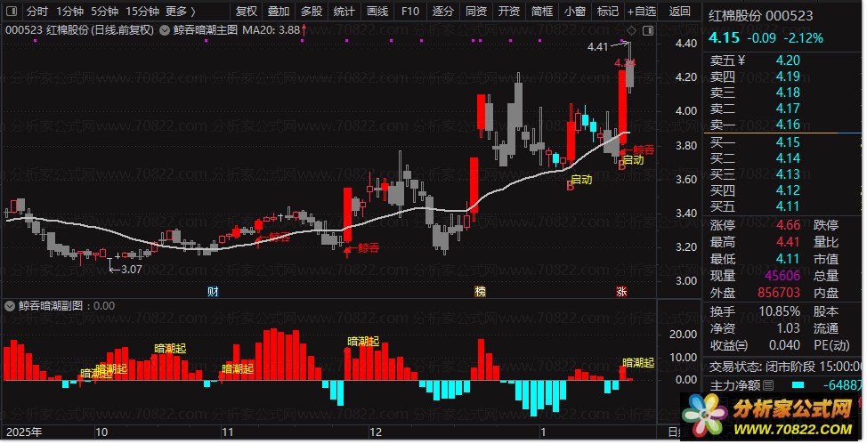 “暗潮”则表现为股价小幅回调甚至收阴,但成交量显著萎缩,同时卖压能量持续减弱。这种“该跌不跌”的现象,往往暗示空方动能衰竭,主力正在悄悄吸筹,为后续拉升做准备。