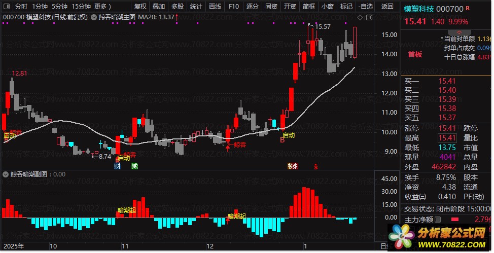 鲸吞暗潮指标的核心价值在于:在市场表面风平浪静甚至阴雨连绵时,提前感知主力资金的蓄势动作。无论是捕捉强势突破的鲸吞信号,还是识别缩量阴线背后的暗潮机会,该指标都能为投资者提供清晰、可靠的决策依据,是短线狙击与中线布局的理想工具。