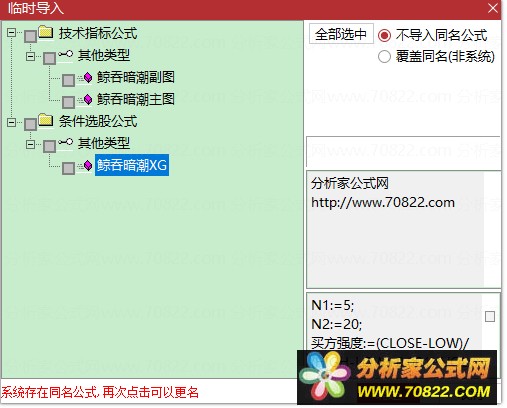 * 关于股票公式时间限制,如果在引入大智慧公式,交易师公式或者飞狐公式的时候,发现公式名称栏是空白的,这时候调整电脑时间到1997年,又能出现公式名称,并且能正常显示,可能是公式使用期限已过。