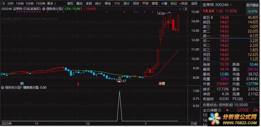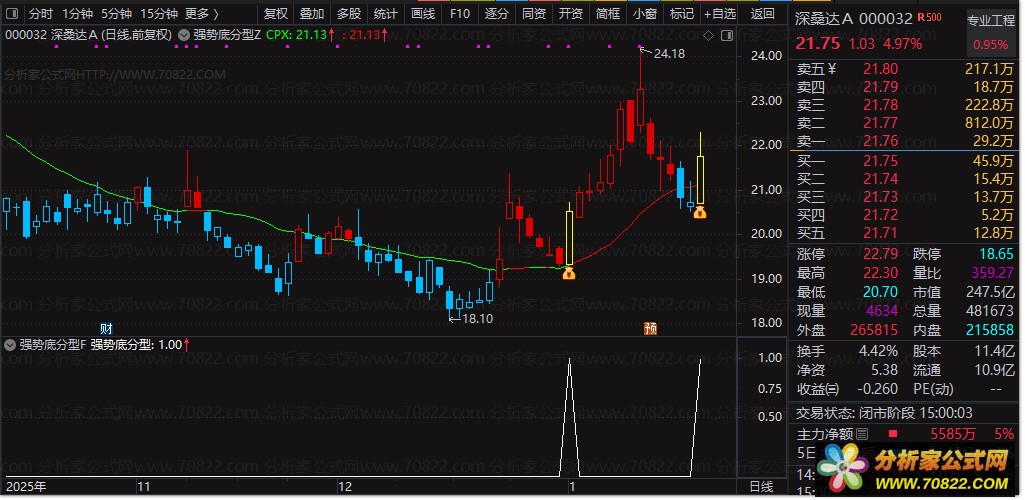 〖强势底分型〗主副图+选股指标——轻松捕捉黑马白马股(附详细使用方法) 本指标是一款主图指标,同时配套选股功能,无未来函数,信号真实可靠。所谓强势底分型,需满足特定K线结构:第三根K线的收盘价必须高于前两根K线的收盘价;若该收盘价还能突破前两根K线的最高价,则信号更强,更具参考价值。