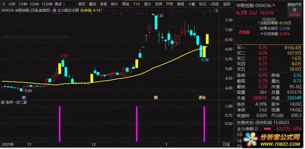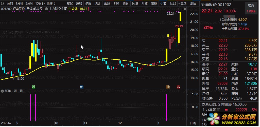〖涨停一进二〗副图/选股指标 源码分享 盘中预警 一进二潜力股筛选工具 涨停一进二选股指标是一款专为短线交易者设计的通达信副图与选股公式,适用于捕捉首板后有望晋级二板甚至三板的强势个股。该指标通过综合分析股票价格涨幅、成交量变化以及封单量等关键市场要素,精准识别具备连板潜力的一进二标的。