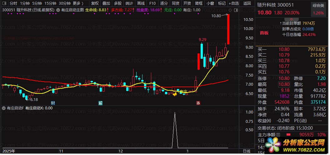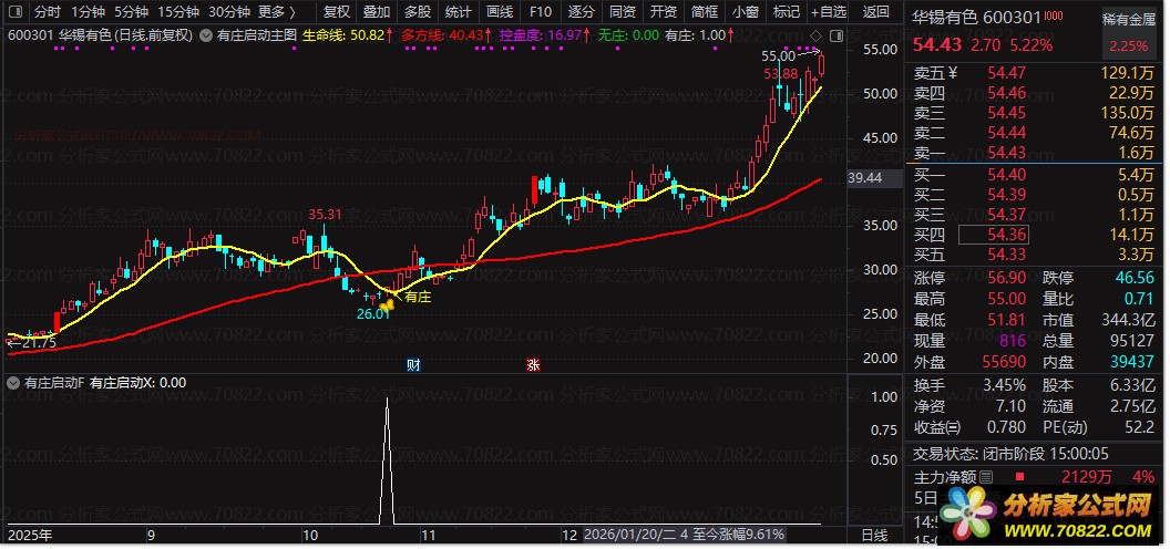 〖有庄启动〗指标源码分享 抓主力入场启动信号 主力资金进场选股公式 有庄启动指标是一款专为短线交易者设计的主力资金监控工具,通过趋势分析与加权平均算法,精准识别主力资金介入时机。该指标在主力开始建仓或拉升初期即发出明确提示信号,帮助投资者及时捕捉强势股启动点。