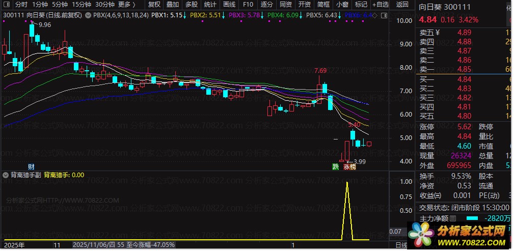 更重要的是,该指标不使用未来函数,这意味着所有的交易信号都是基于当前和过去的数据生成的,从而保证了信号的稳定性,不会出现漂移的情况。对于想要深入研究市场背离现象并据此做出投资决策的股民而言,背离猎手无疑是一个不可多得的好帮手。