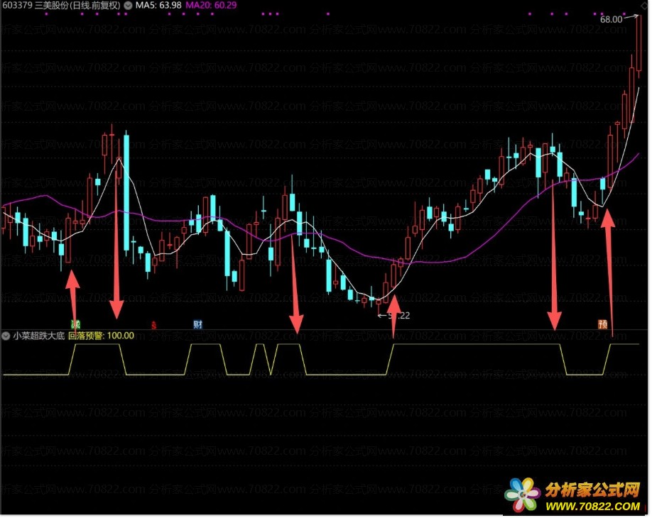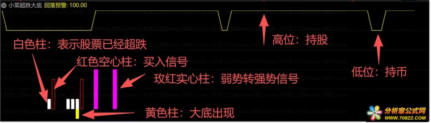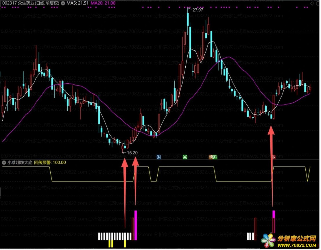 原创指标〖小菜超跌大底〗1副图2选股公式 带保姆级用法详解 指标用法说明详解: