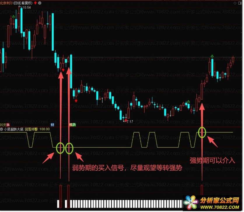 ![]() ![]() ![]() 即使没有出现超跌信号,上方强弱线也可以作为辅助,作为买入卖出信号。