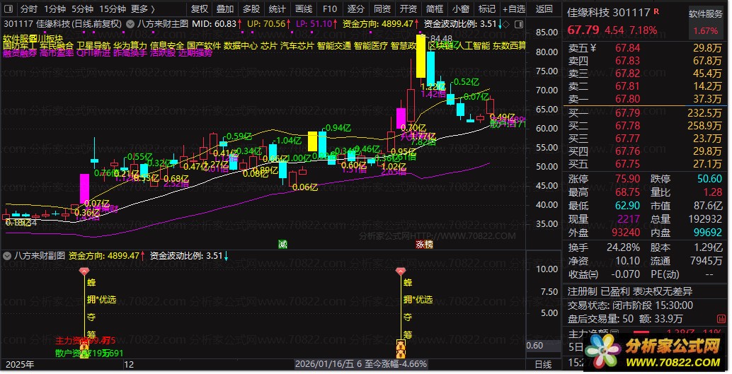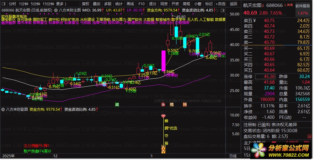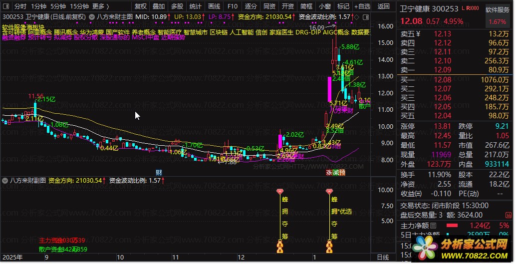 资金流向监控:精准区分主力资金与散户资金,实时计算主力净流入额,揭示真实资金意图。
