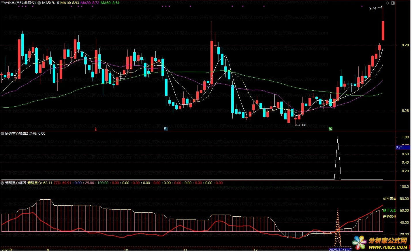 〖筹码重心〗副图+选股指标 筹码分析 精准捕捉趋势启动点 指标说明: