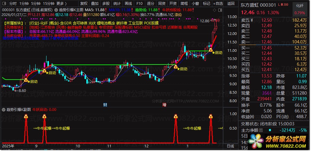 〖趋势引爆K〗套装 显示基本面信息 识别技术形态和主力资金动向(1主1副1选) 这是一款功能丰富的通达信副图主图叠加指标,专为快速识别股票基本面信息、技术形态与主力资金动向设计。