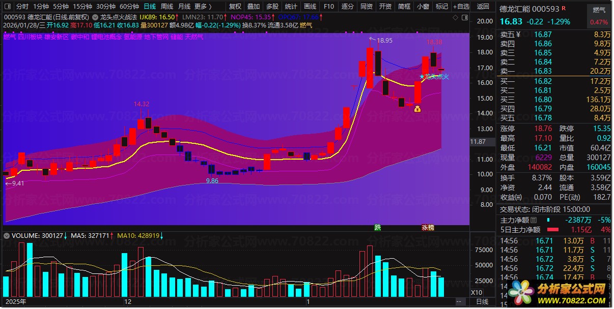 〖龙头点火战法〗BOLL通道突破+筹码集中 助攻捕捉翻倍龙头起爆点 “龙头点火战法主图”是一款融合趋势、量能与情绪共振的智能主图指标,专为短线高手设计。公式通过多周期EMA、DMA动态通道、KDJ金叉及涨停结构识别,精准定位主力资金“点火”瞬间。当个股放量突破关键均线、同时满足涨停未封板或强势回踩条件时,系统自动标注“★龙头点火”信号,并以彩色K线区分多空强弱——红色代表强势上涨,蓝色提示弱势整理,黄色警示极端波动。