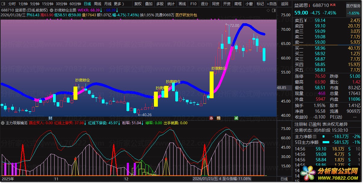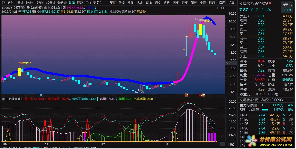 综合性的主力资金跟踪与超短线交易系统,其核心思想是捕捉市场底部的主力吸筹行为,并结合多种动量指标来发现短线买入时机。