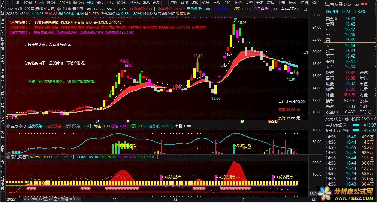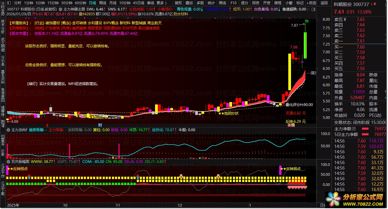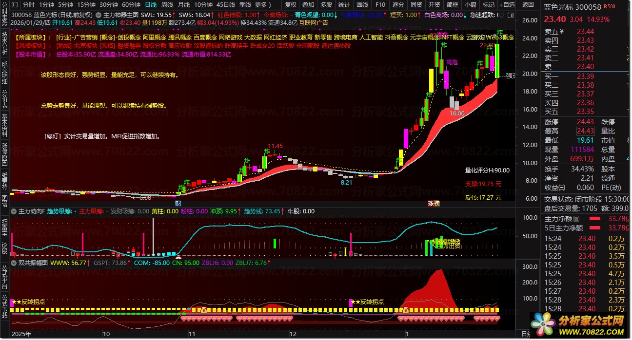 超强大〖主力神器三件套〗1主图+2副图+1选股,精准捕捉“反转拐点”与主力动向! 这套通达信公式组合堪称实战利器:“主力神器主图”融合K线、板块信息、业绩数据、支撑阻力、连板识别及多维趋势判断,实时标注持股/观望信号;“双共振副图”通过量价结构与能量控盘模型,叠加金叉共振提示启动时机;“反转拐点选股”则聚焦短期超跌后的强势反转信号,结合均线多头排列过滤假信号。三者联动,可高效识别主力介入、趋势转折与妖股启动节点。