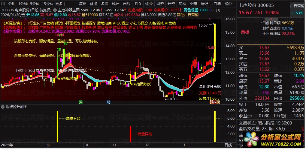 〖连板拉升〗副/选指标公式,结合量价异动 源码分享 指标概述