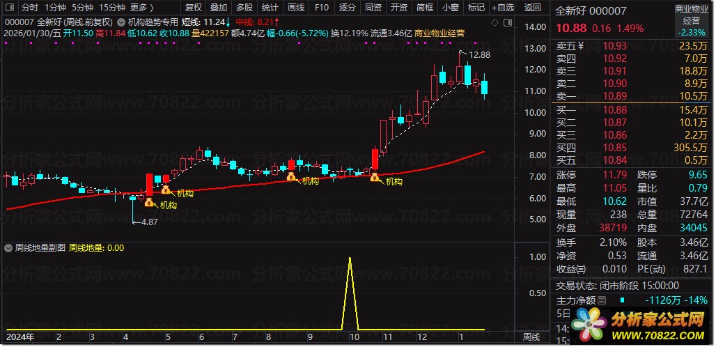 〖周线地量〗副图/选股指标公式优化版本,探讨股票市场中的周线缩地量现象,分享源码 指标简介