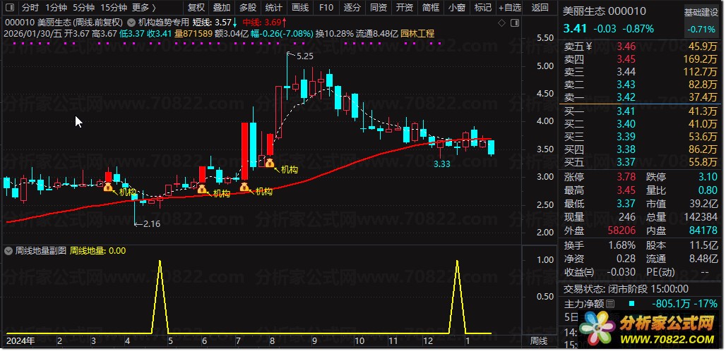 1. 周线地量指标是一种专注于分析周线级别成交量的工具,其核心在于通过观察周线缩地量来判断市场动态。所谓地量指的是从上一次5日量周线与10日量周线出现金叉以来所记录到的最小成交量,这种情况通常暗示着近期市场的低点。