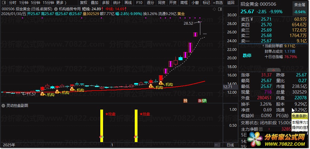 - 副图公式:加载至个股K线图下方副图区域,出现蓝色★控盘标志即为信号;
