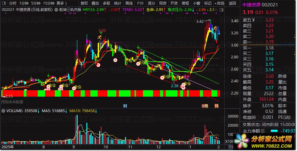 乾坤三轨共振是一个综合技术分析工具,用于趋势判断、支撑压力位识别、多空信号提示以及波段操作。以下是关于其核心功能、交易信号逻辑和实战应用的简要解析: