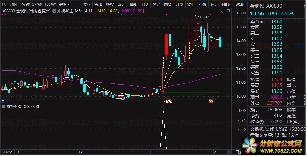 2. 用于日线周期,信号出现时(XG=1)代表符合“炸板40+资金回流+技术修复”复合条件;