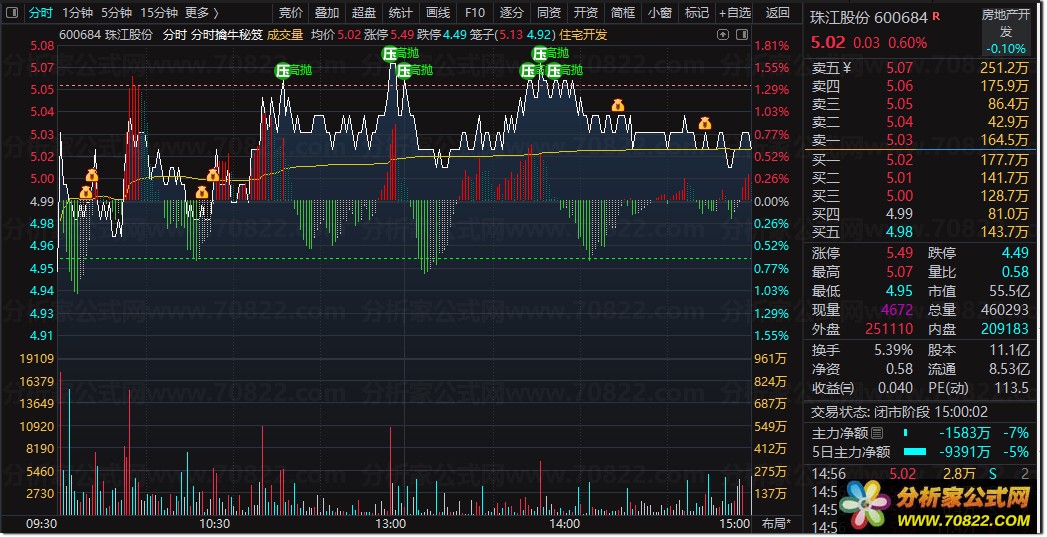 9、“压高抛”图标表示分时高抛信号,辅助投资者在高位及时止盈。