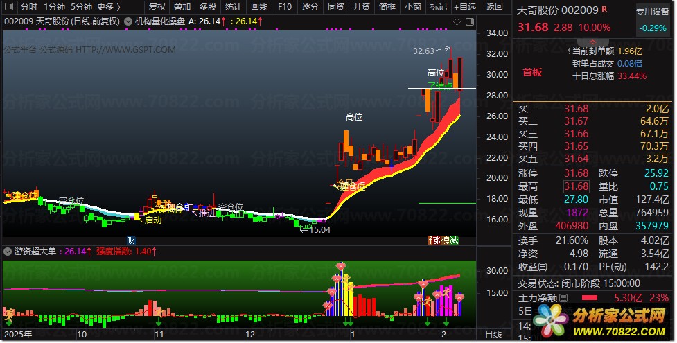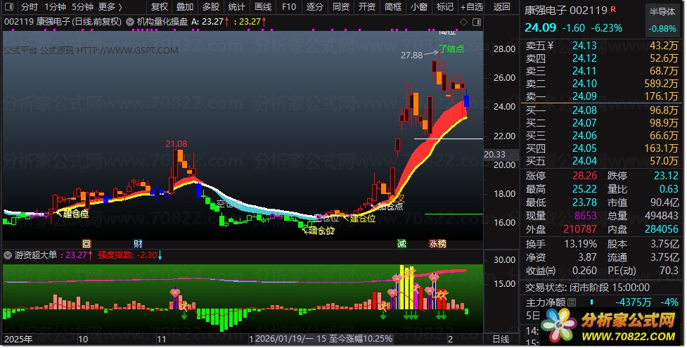 主图用于判断整体趋势与关键位,副图辅助确认资金介入强度,选股公式每日盘后或盘中扫描符合条件个股。三者联动,形成“看势—验资—选股”完整交易闭环,适合短线狙击与波段操作。