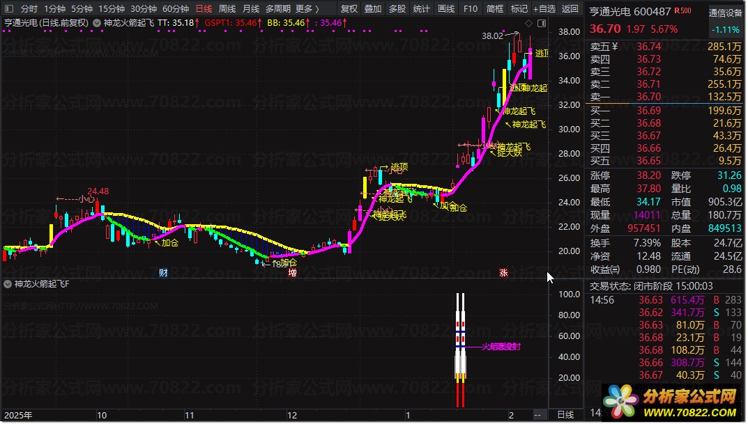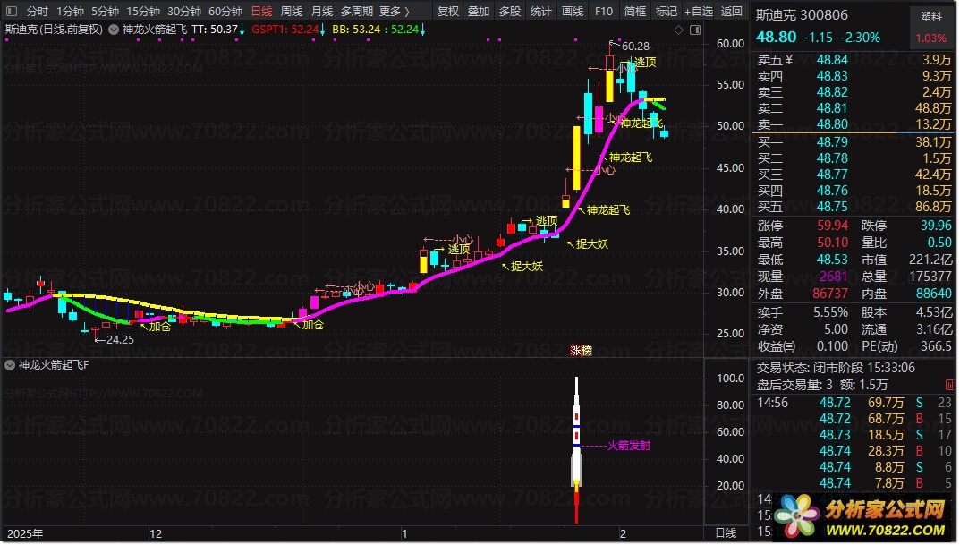 〖神龙火箭起飞〗主副图+选股指标,使用方法及买卖点解析 使用说明:
