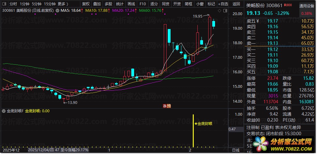 无论是震荡市中的回调低吸策略,还是熊市末期的底部抄底操作,金底封喉凭借其对主力资金行为的敏锐捕捉能力,为投资者提供可靠的股票技术指标参考,让底部交易更加有据可依,助力实现稳健盈利。
