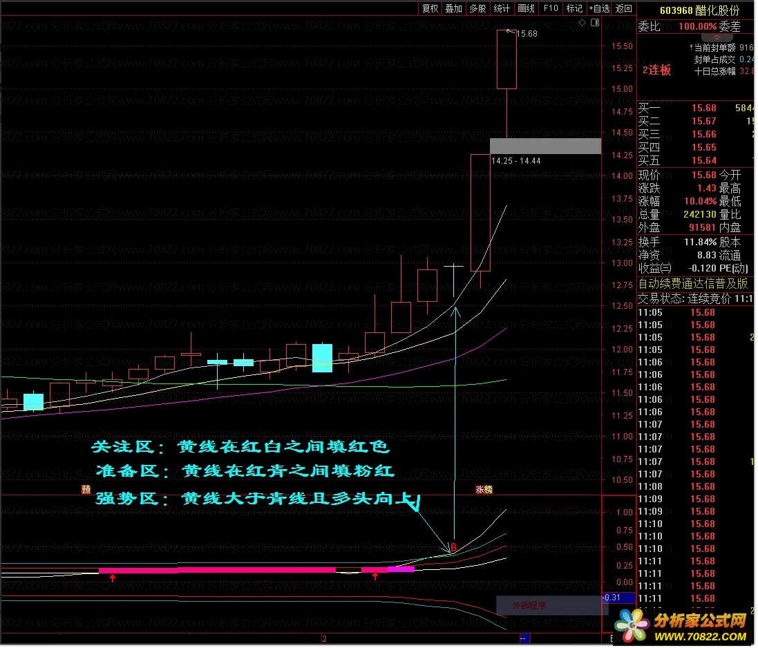 强势区:黄线大于青线且多头向上。