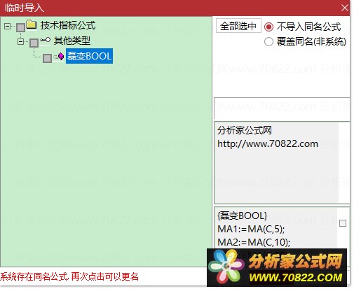* 关于股票公式时间限制,如果在引入大智慧公式,交易师公式或者飞狐公式的时候,发现公式名称栏是空白的,这时候调整电脑时间到1997年,又能出现公式名称,并且能正常显示,可能是公式使用期限已过。