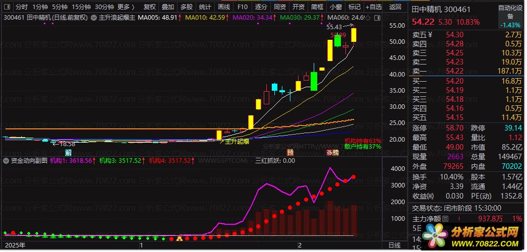 选股应用:每日盘后运行选股公式,聚焦符合“主升+资金+趋势”三重条件的标的,提升操作效率。