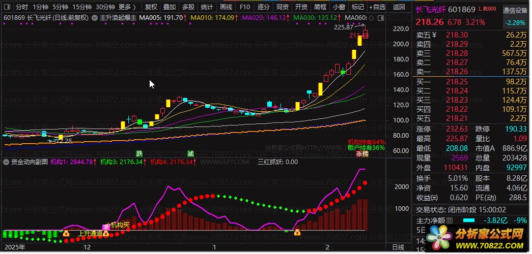 副图验证:当出现“机构买”提示且“钱袋子”三红共振,代表主力积极介入;