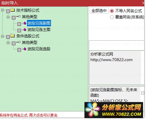 * 关于股票公式时间限制,如果在引入大智慧公式,交易师公式或者飞狐公式的时候,发现公式名称栏是空白的,这时候调整电脑时间到1997年,又能出现公式名称,并且能正常显示,可能是公式使用期限已过。