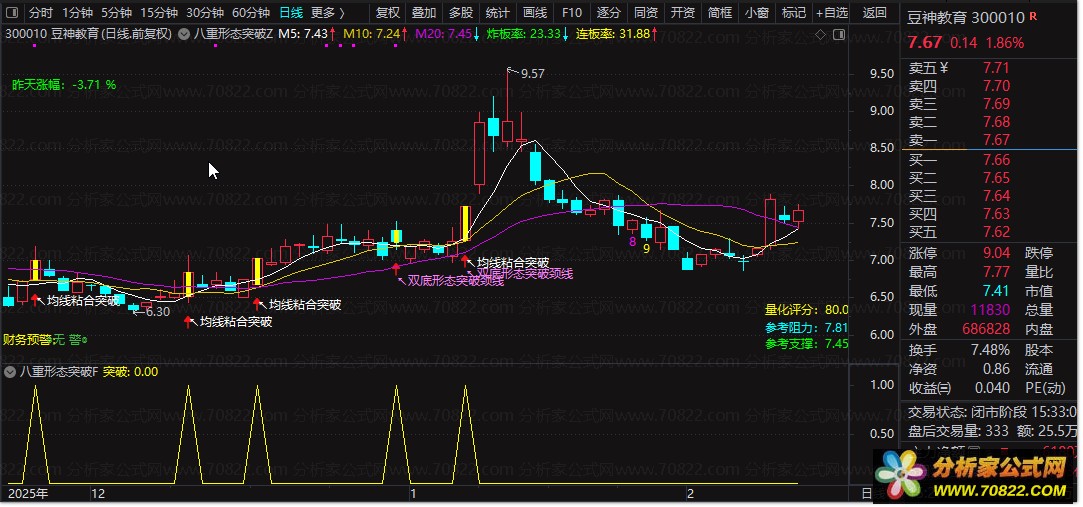 〖八重形态突破〗精准捕捉八种经典突破信号 提升选股胜率 手机电脑端适用 本指标包含1个主指标、1个副指标和1个选股指标,可精准捕捉八种经典突破形态。指标源码开放,支持通达信手机端与电脑端使用,适配各类交易场景。