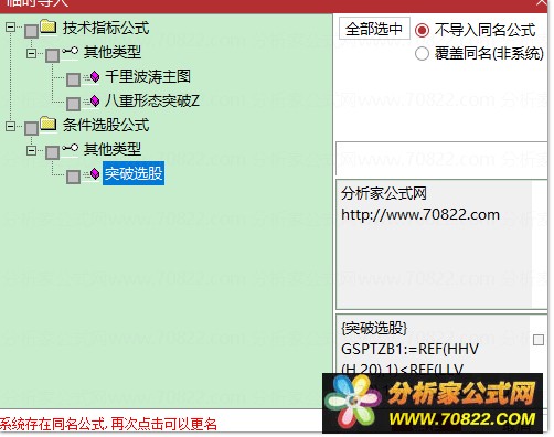 * 关于股票公式时间限制,如果在引入大智慧公式,交易师公式或者飞狐公式的时候,发现公式名称栏是空白的,这时候调整电脑时间到1997年,又能出现公式名称,并且能正常显示,可能是公式使用期限已过。