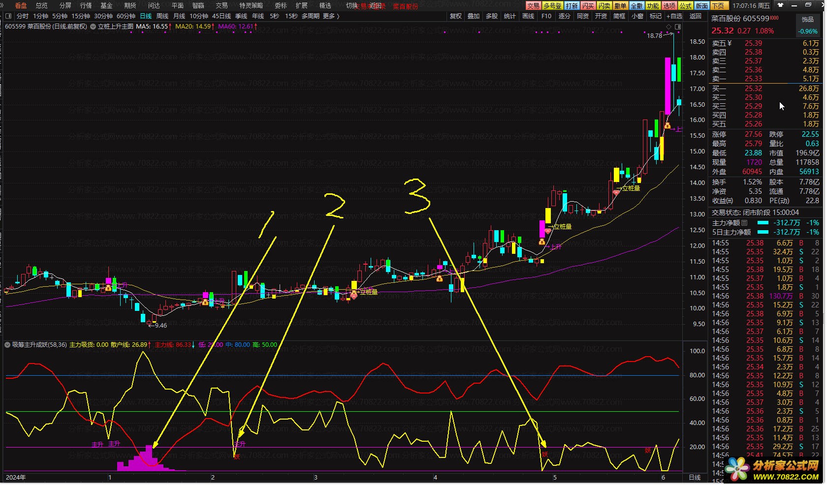 当指标出现“主升浪”字样,紧接着弹出“妖”字,就是绝佳的关注信号,可择优介入。