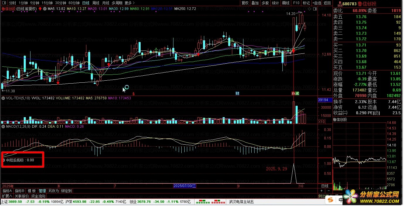 出现中阳后低吸信号时,必须确保当日日线图中5日均线、10日均线、20日均线均呈向上趋势,三者缺一不可,宁可错过也不冒险。