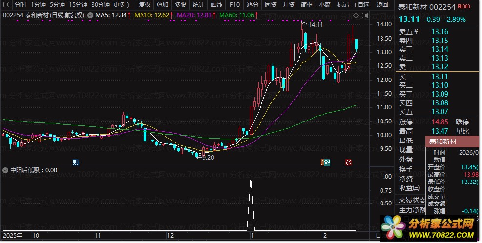 当个股经历长时间盘整且未出现中阳或大阳线,而信号日突然收出中大阳线,往往预示启动概率较高,是中阳后低吸策略的理想介入点。
