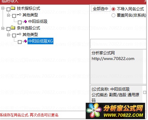 * 关于股票公式时间限制,如果在引入大智慧公式,交易师公式或者飞狐公式的时候,发现公式名称栏是空白的,这时候调整电脑时间到1997年,又能出现公式名称,并且能正常显示,可能是公式使用期限已过。