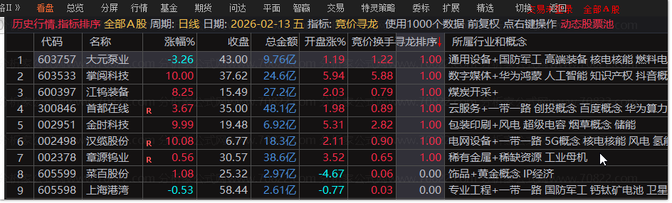 仅在交易日9:25–9:30竞价结束期间运行,用于盘前预选;