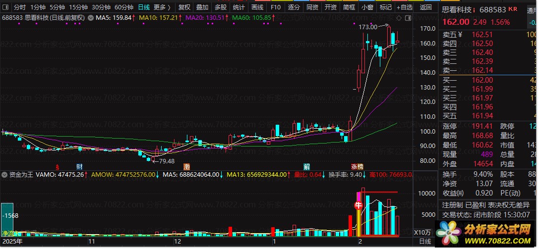 〖资金为王〗副图选股公式,AI合成(量王+资金)组合 精准捕捉牛股上涨核心动力 资金为王指标将量王与主力资金流向数据进行深度融合,并结合AI算法进行合成优化,能够有效识别具备强劲上涨潜力的优质牛股。当资金为王指标出现量王添加资金信号时,往往预示着主力资金正在积极介入,这类股票极有可能开启主升浪行情。