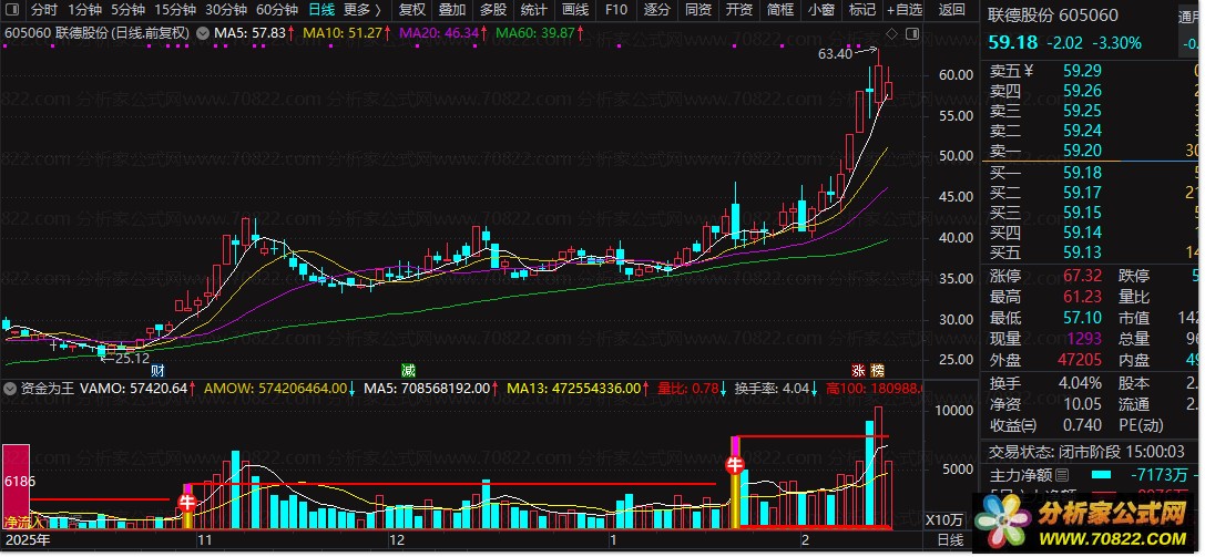 掌握资金为王指标的核心逻辑,就等于抓住了股价上涨的核心驱动力。无论是短线交易还是中线布局,资金为王副图都能为投资者提供有力的数据支持和方向指引,是提升交易胜率的重要工具之一。资金为王副图选股公式,需要Level2行情支持。